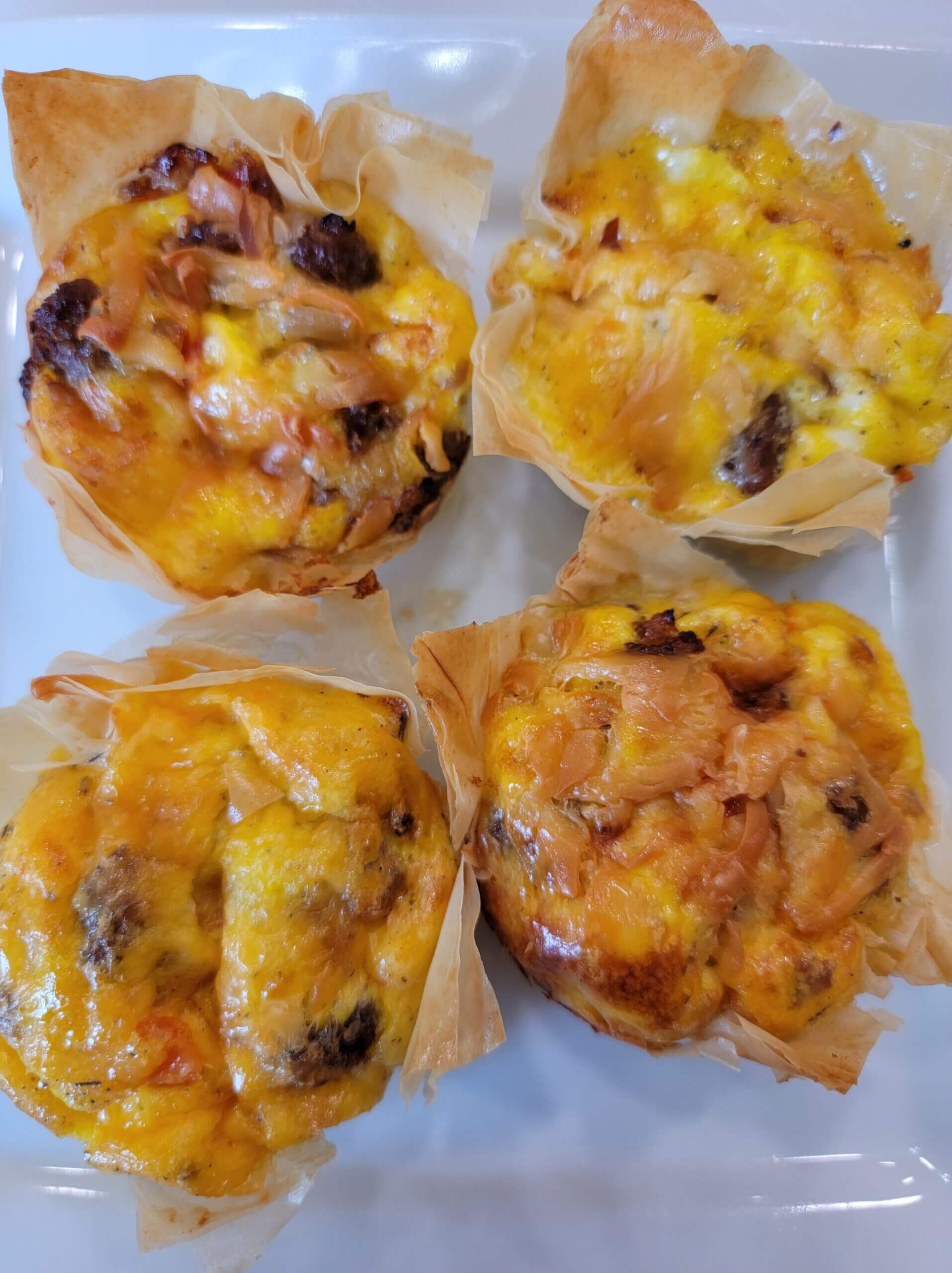 I make egg bites two different ways, one with phyllo dough and another in silicone containers. Egg bites are a great way to use up extra vegetables in your fridge like peppers, onions, mushrooms, broccoli, etc. These can be stored in your freezer in a silicone bag or glass container.