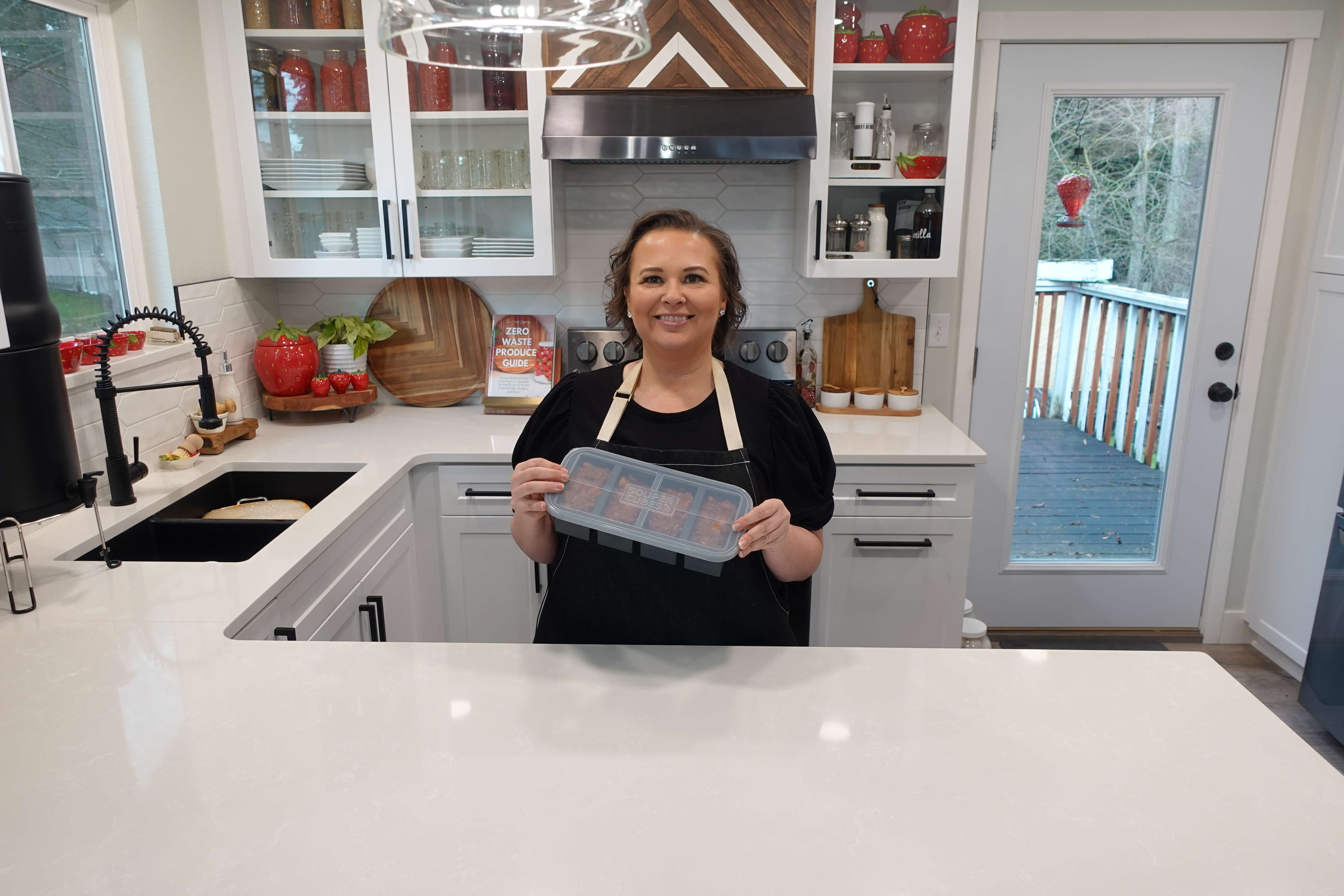 You can freeze them in a glass container or I also enjoy freezing things in Souper Cubes. These silicone storage containers allow you to freeze the perfect size portions.