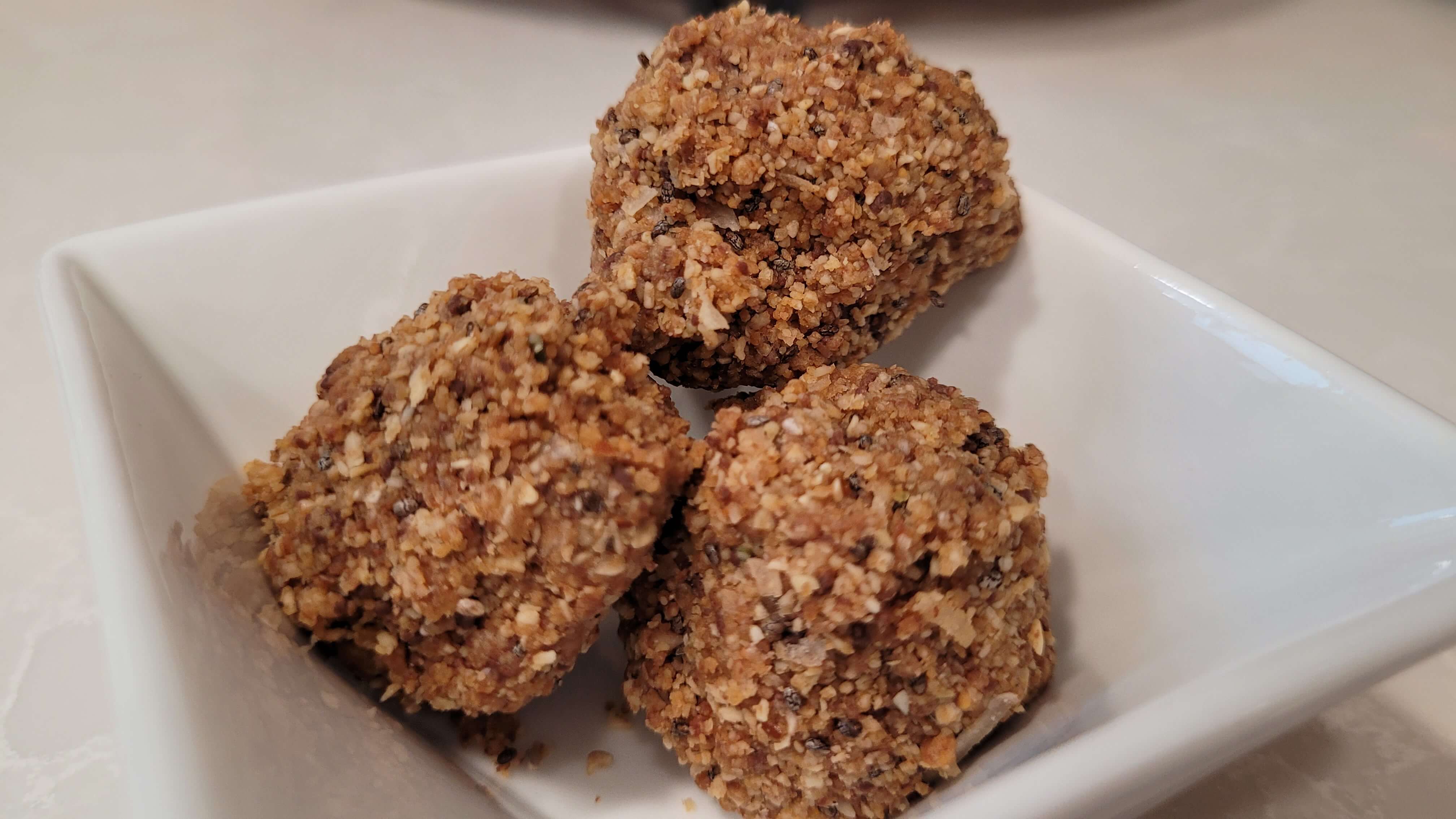 - Form into balls and store in glass container in the fridge