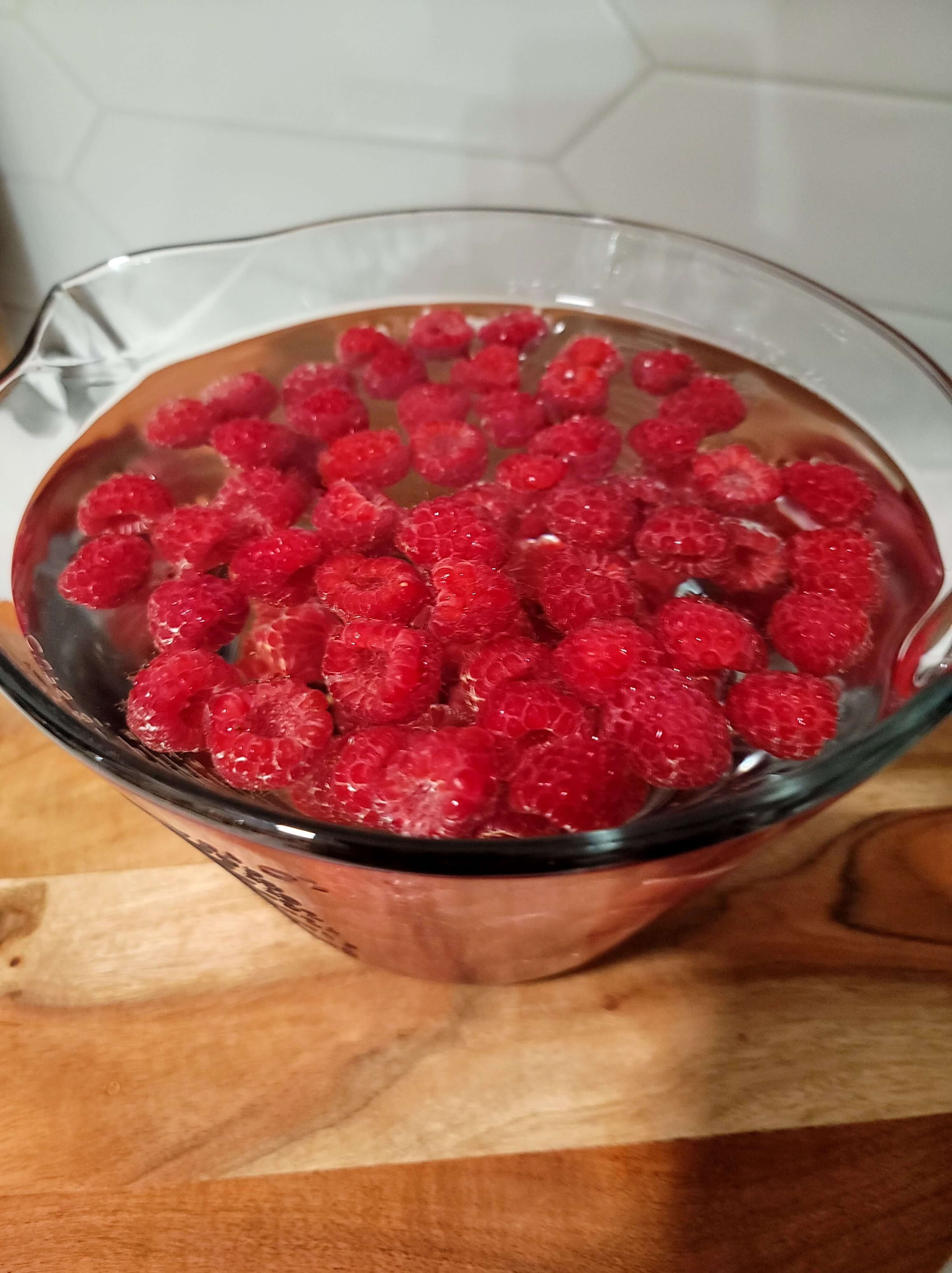As soon as you get home from the grocery store, you should take your fresh raspberries out of the plastic container and wash them. Check for any moldy berries and throw them away before you begin the washing process.