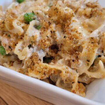 Sprinkle with breadcrumb topping (use as much as you like) and serve warm
